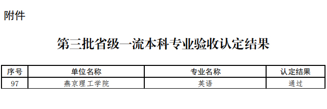 近日,河北省教育厅印发《关于公布第三批省级一流本科专业验收认定结果的通知》(冀教高函〔2026〕11号),我校英语专业顺利通过验收,被正式认定为省级一流本科专业。截至目前,学校累计已有10个专业通过省级一流本科专业验收,专业建设成果显著。