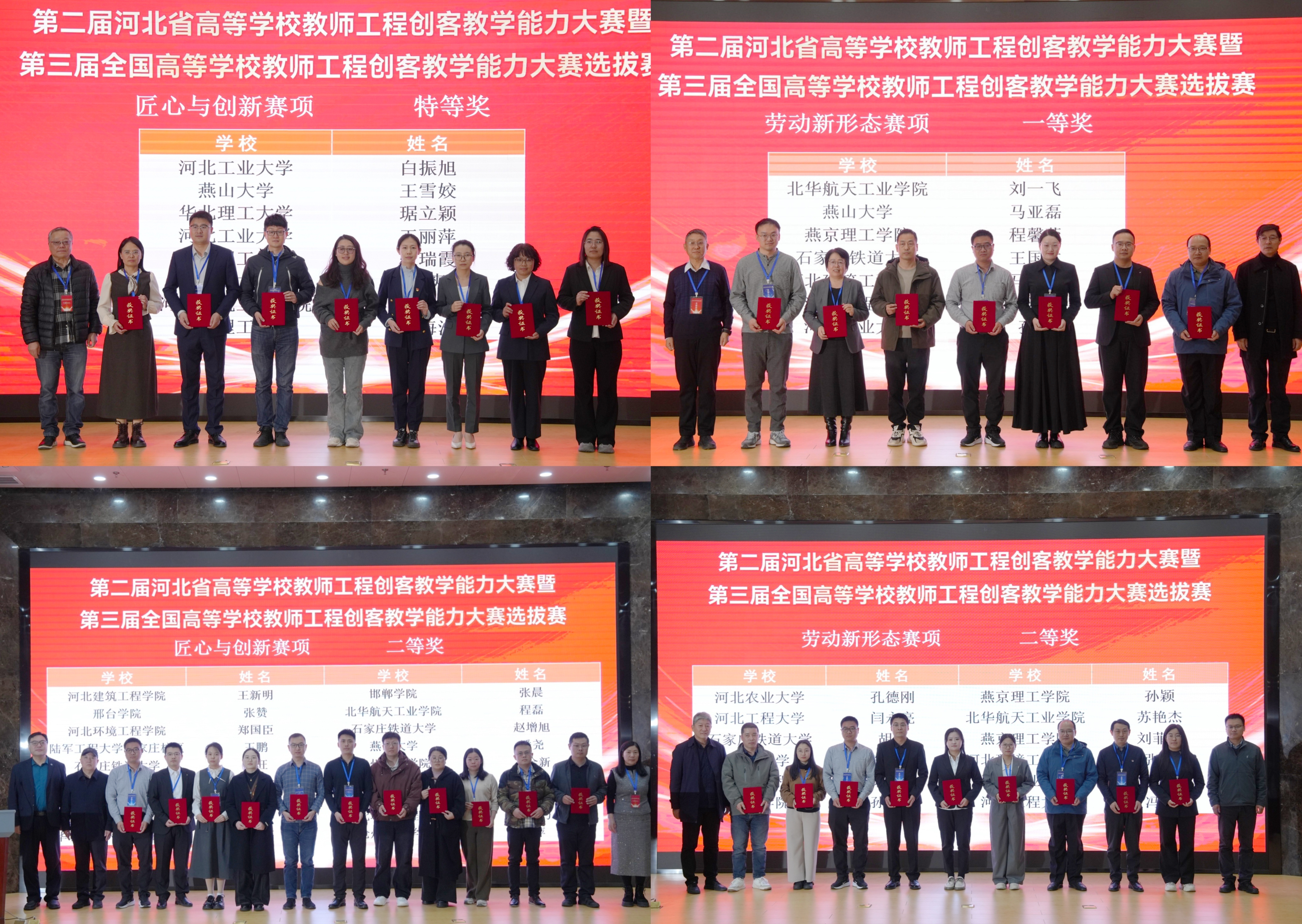 3月13日—15日,河北省第二届高等学校教师工程创客教学能力大赛暨第三届全国高等学校教师工程创客教学能力大赛选拔赛在燕山大学举行。我校选派的六组教师团队凭借扎实的教学功底和创新的教学理念脱颖而出,斩获特等奖1项、一等奖1项、二等奖4项,学校同时荣获“优秀组织奖”。